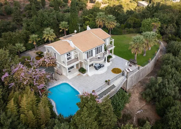 На расстоянии 7 км находится Музей банкнот, а на расстоянии всего 1 км от виллы - дворец Ахиллион. В районе находятся такие торговые центры, как Площадь Спианада, примерно в 15 минутах езды.